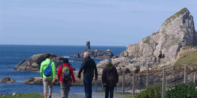 A day in which to savour the rarely visited but incredibly beautiful walk from the village of Glencolmcille to the deserted fishing hamlet of Port. Experience the exhilaration of hiking along the wild and rugged coast with only grazing sheep for company. Loop back to Glencolmcille where you can explore the many stone age, bronze age and early-Christian sites for which the valley is famous.